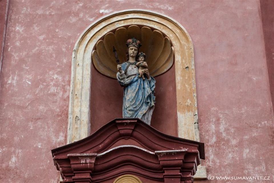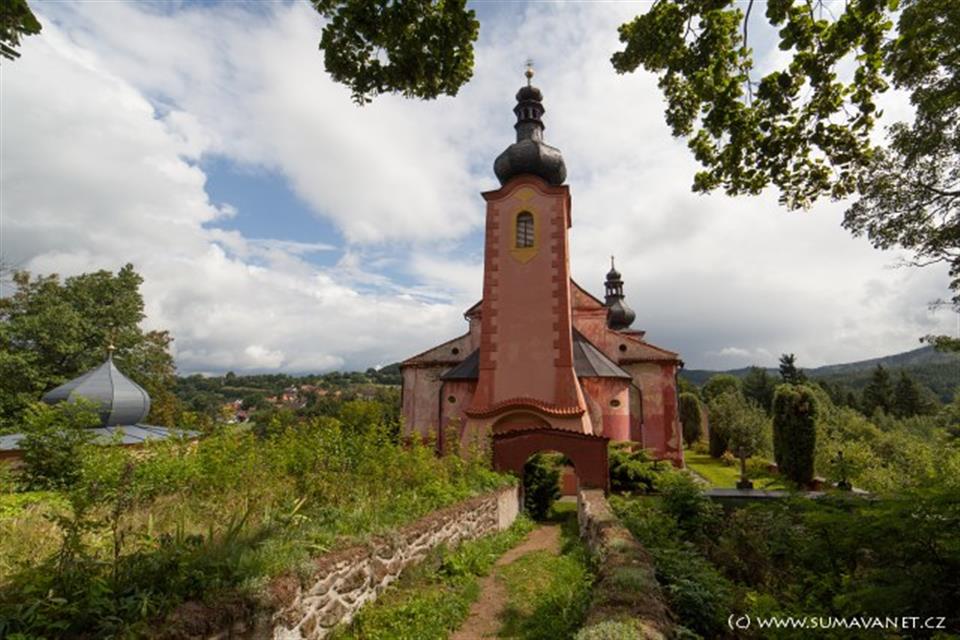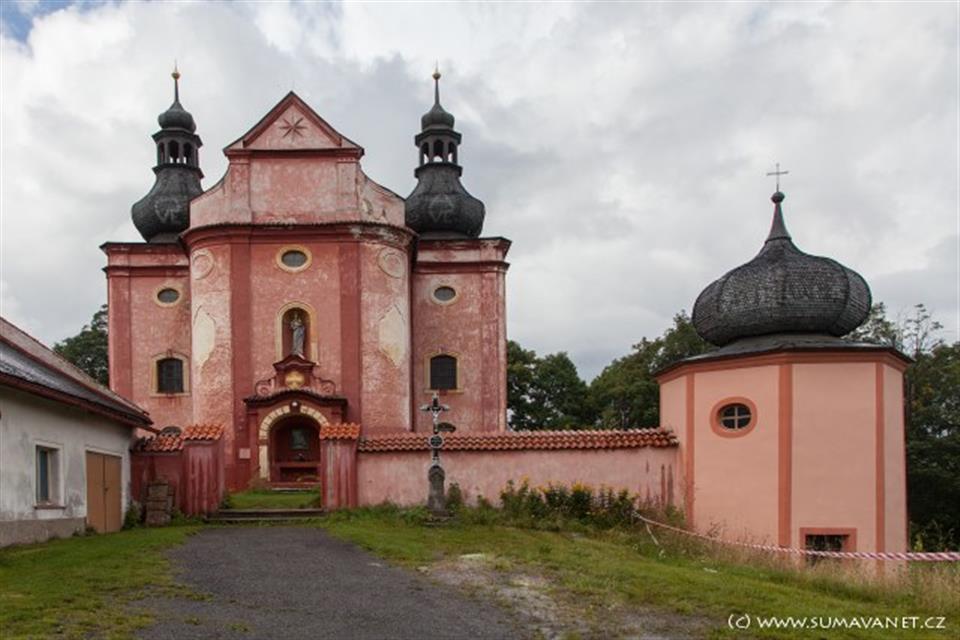 Přirozeným centrem kraje pod horou Žďánovem v Pošumaví je Strašín s poutním a zároveň farním kostelem Narození Panny Marie. Trojlodní kostel s červeně natřenou fasádou a třemi cibulovými báněmi je položen na návrší mimo ves a tak je vidět už zdaleka ze všech stran. Vznik původní kostelní stavby, ze které se dochovala pouze hranolová třípatrová románská věž v ose západního průčelí, je kladen do první poloviny 13.století.