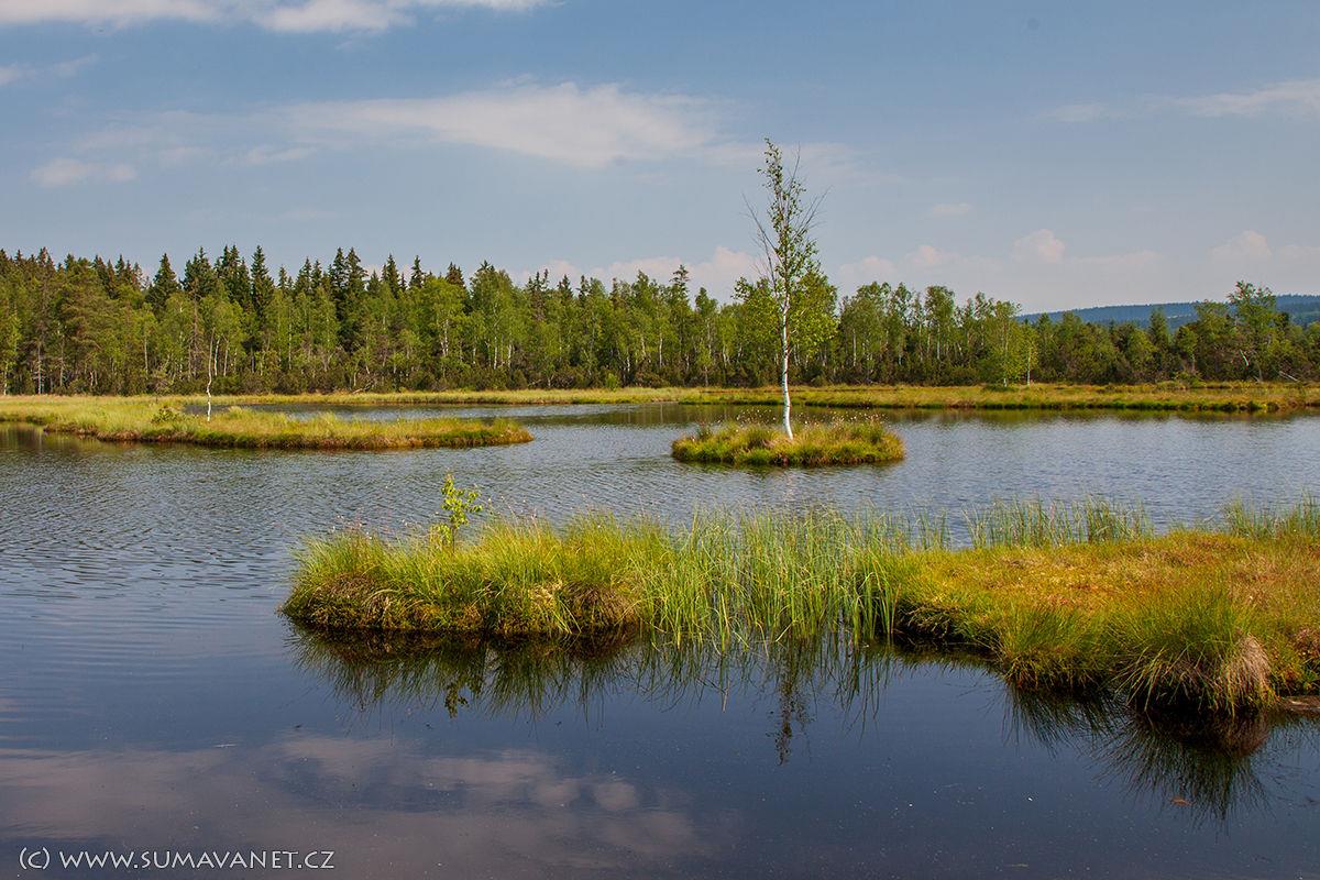 Velké rašelinné jezírko s plovoucími ostrůvky je největším svého druhu v Čechách - 1,3 ha, 909 m n.m. Krátká naučná stezka (260 m) vede po povalovém chodníčku přes rašeliniště k jezírku v Čechách, v centrální části je vyhlídková plošina.