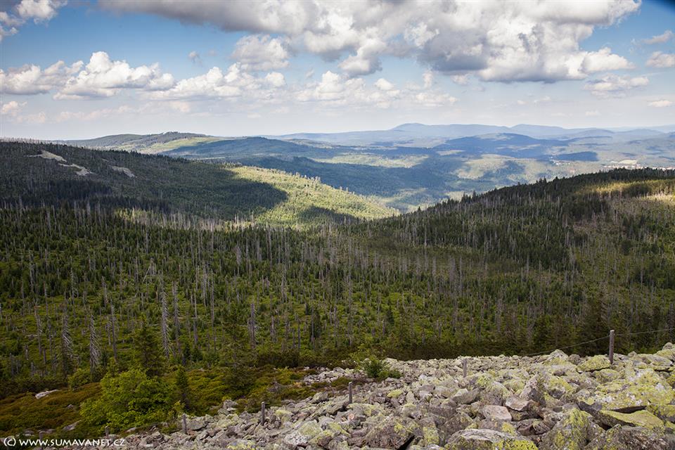 Hlavní horský hřeben, podle kterého se vine česko-německá státní hranice, je tvořen těmito nejvyššími vrcholy: Ostrý/Grosse Osser (1293 m n.m.), Velký Javor/Grosser Arber (1456 m n.m.), Roklan/Rachel (1453 m n.m.), Luzný/Lusen (1370 m n.m.) a Bavorský Plechý/Plöckenstein (1363 m n.m.). V době ledové byly tyto vrcholky pokryty ledovcem; jako památka po ledovcích zbyly ledovcové kotle, ve kterých dnes najdeme malá horská jezera jako např. Roklanské jezero/ Rachelsee.